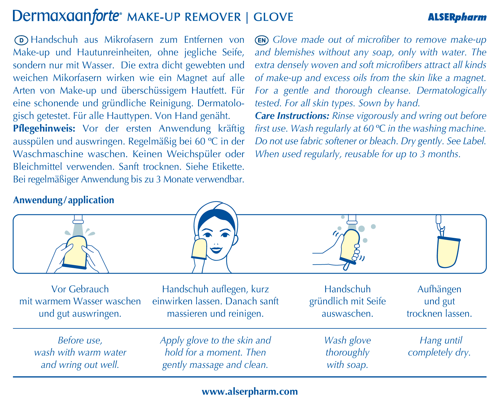 - 📖 Einfache Anwendung – Handschuh vor Gebrauch mit warmem Wasser befeuchten, kurz auflegen, sanft massieren und Make-up entfernen. Anschließend gründlich mit Seife auswaschen und an der praktischen Lasche trocknen lassen.